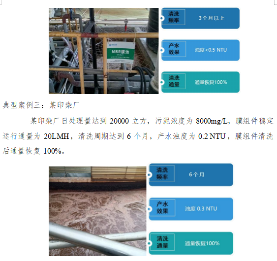 6. 高抗污染性能:在40LMH運行通量下,膜組件清洗周期長達3個月以上。